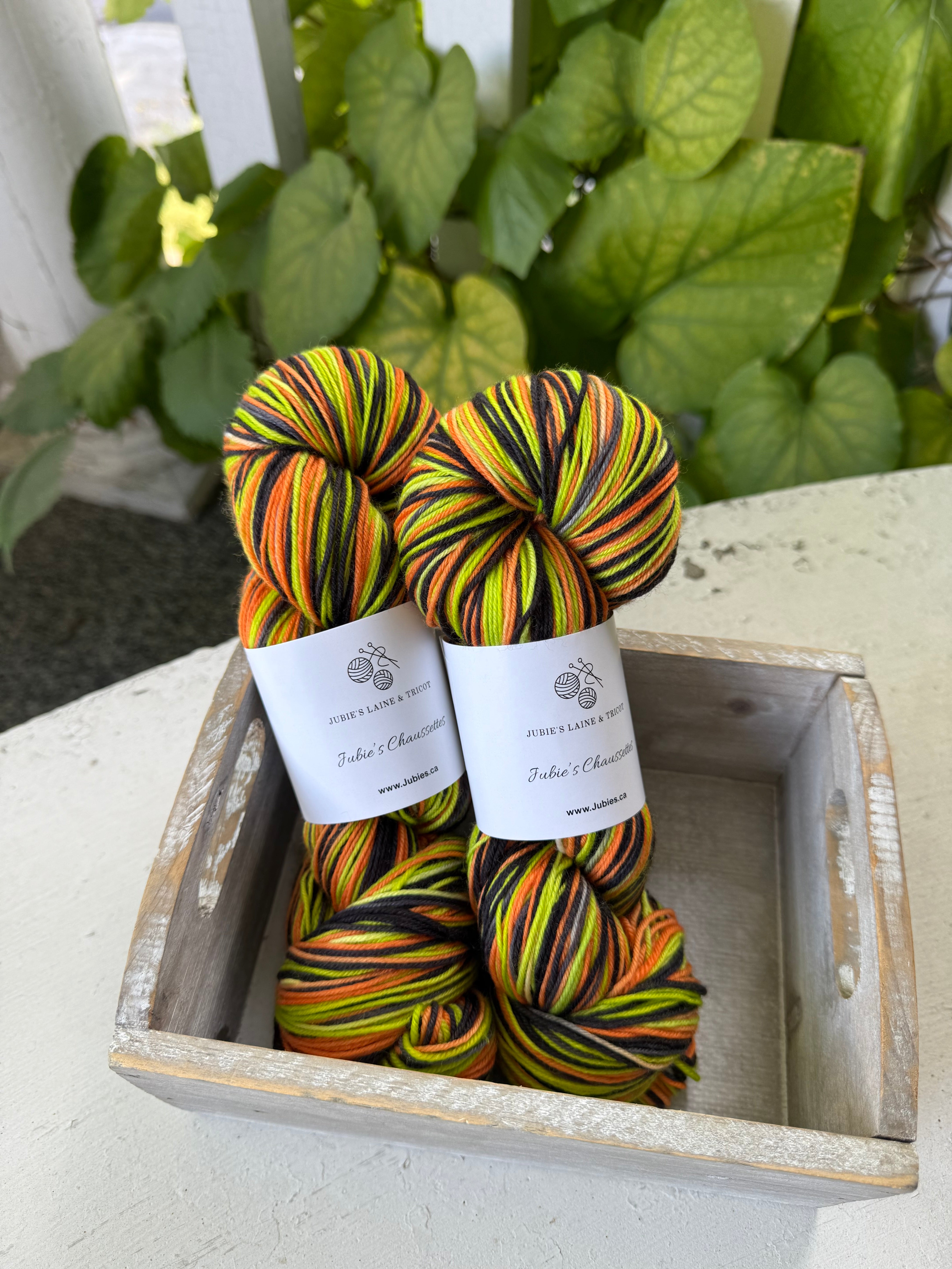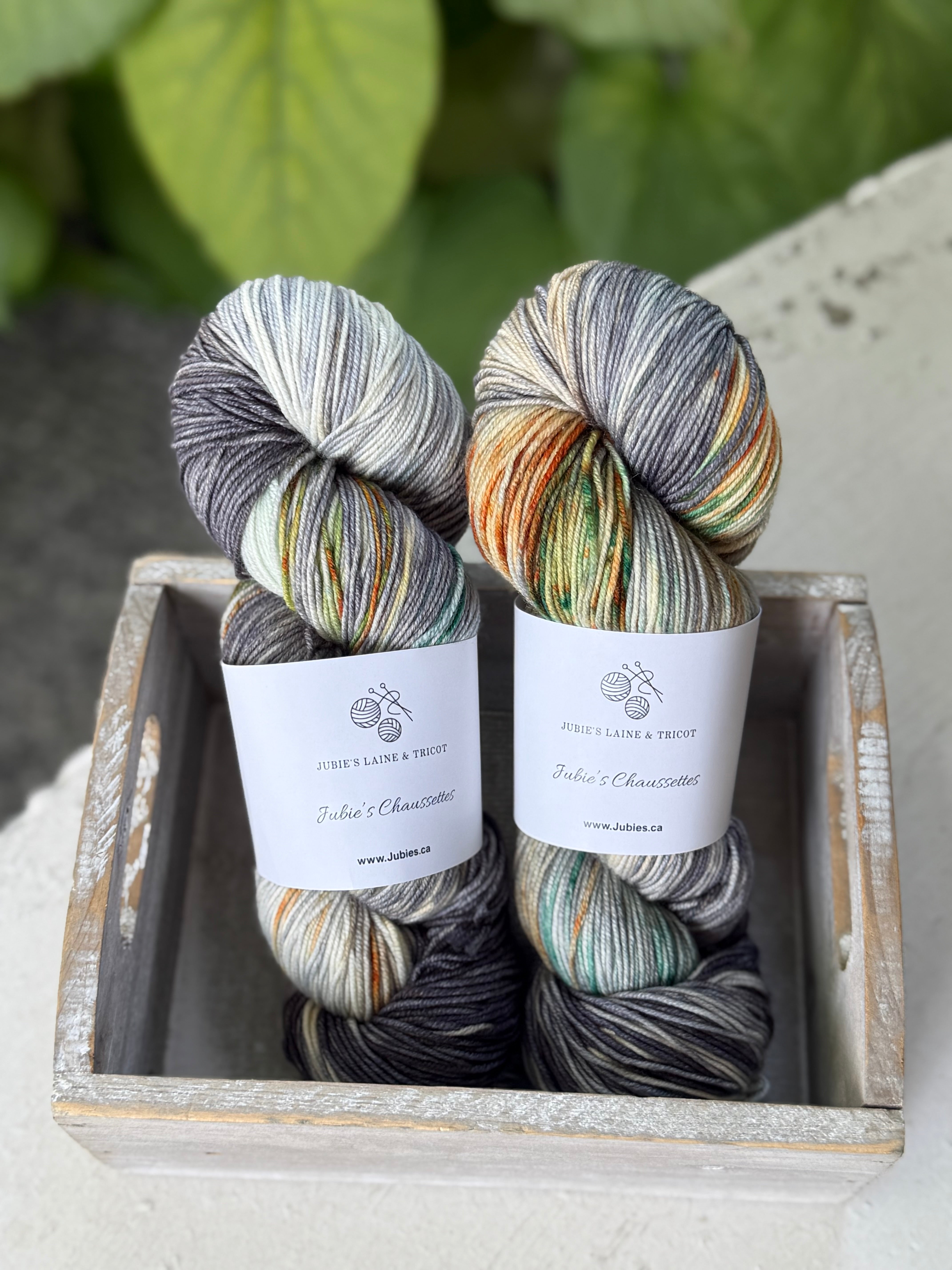 Jubie's Chaussette est une laine soigneusement teinte à la main ici à notre boutique!